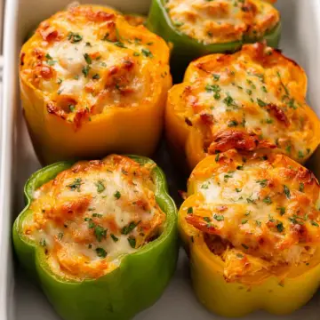 I’m always looking for ways to transform leftover rotisserie chicken into something special. These cheesy buffalo chicken stuffed peppers hit the mark every single time. The combination of tangy buffalo sauce, creamy ranch-seasoned filling, and melted colby jack creates magic in each bite.
