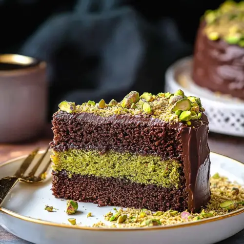 I love garnishing each slice with crushed pistachios and a few golden strands of toasted kataifi. A light dusting of cocoa powder adds an elegant touch. This cake pairs beautifully with Turkish coffee or a glass of cold milk. For special occasions, I’ve served it alongside pistachio ice cream – talk about pistachio heaven!